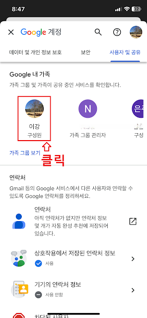 📱모바일에서 구글계정 가족 탈퇴하는 방법