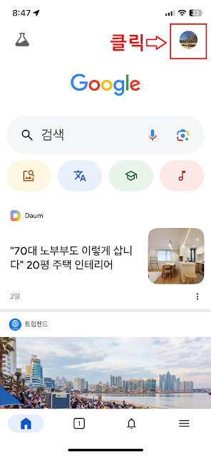 - 오른쪽 상단의 프로필 아이콘을 탭하세요
